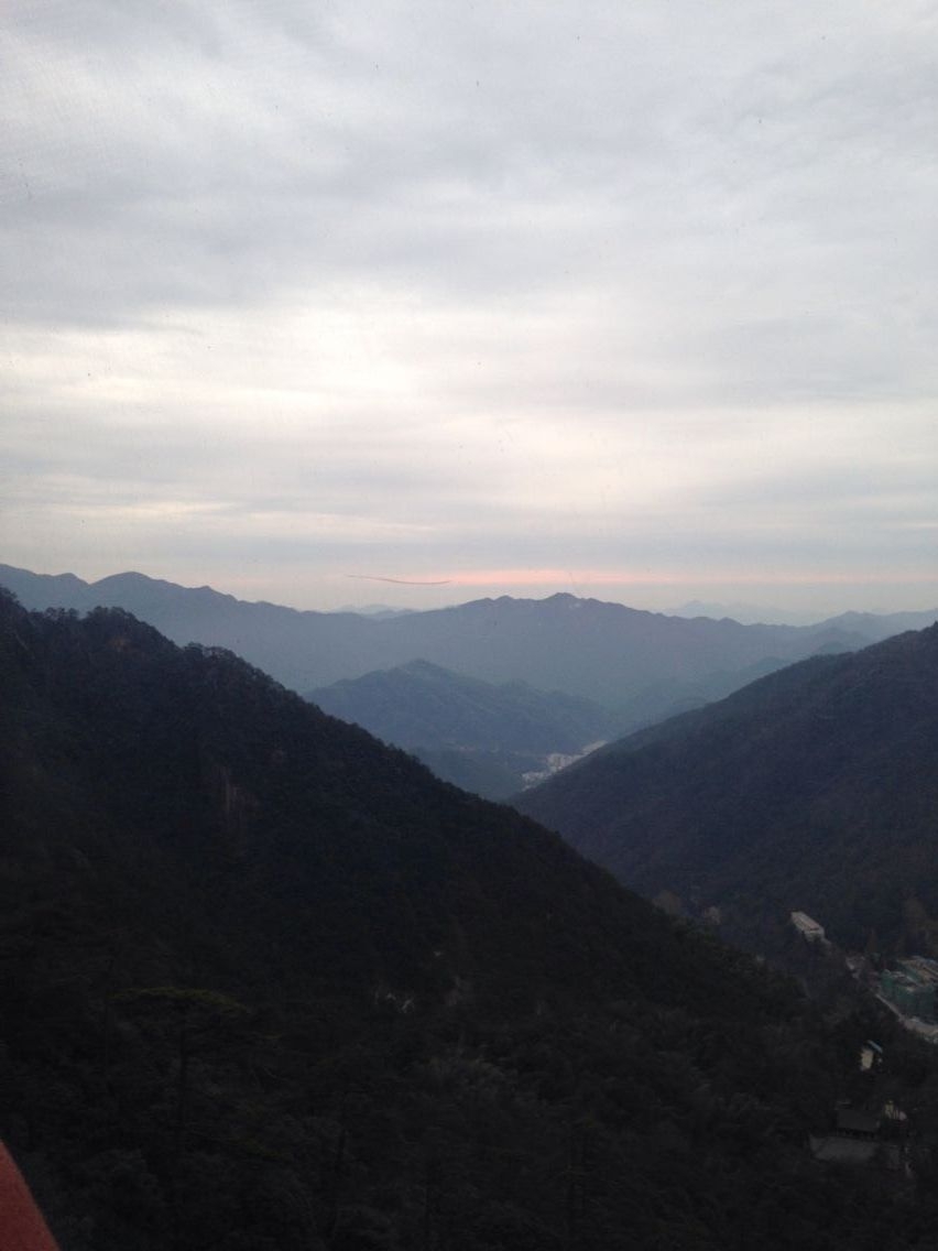 從市區(qū)做景區(qū)公交40分鐘才到達我們神往的黃山風景區(qū)??紤]到大家平時的運動量都比較少,公司為每位員工特意買了纜車,我們乘纜車而上。從空中俯瞰山下,滿眼都是奇松怪石。讓我們不得不嘆服大自然的鬼斧神工。